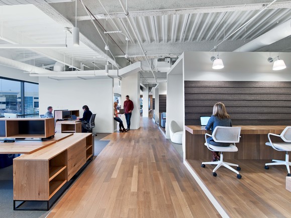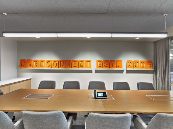 Extremely aggressive design filled with exposed ceilings, canted drywall ceilings, butt glazing systems, meeting bars, and yoga rooms. With a mix of work types - including finance, technology, sales, and support - it was a priority for the workplace to encourage communication and connection between the groups, while still addressing the unique needs of each. By reducing the amount of enclosed private space, Cardconnect was able to realize a culture that has flattened hierarchy, increased collaboration, and provided choice to all employees, regardless of work function.